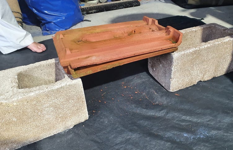 When it comes to breaking, knowledge of the materials is crucial. Both in how they respond to being hit, and in how to arrange them. I’ve seen many people fail to break with good technique because they haven’t attended to how the materials are set up in the holder.